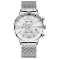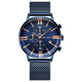 A sophisticated timepiece designed for modern elegance. The Aurora Mesh Chronograph features a rose-gold mesh bracelet, Roman numeral markers, and a clean chronograph layout. Perfect for both everyday style and formal occasions.