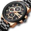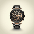 Bold and refined. The Regent Chronograph pairs a black dial with rose-gold accents and a durable steel bracelet. With multiple sub-dials and a tachymeter bezel, it delivers both luxury and performance in a modern design.